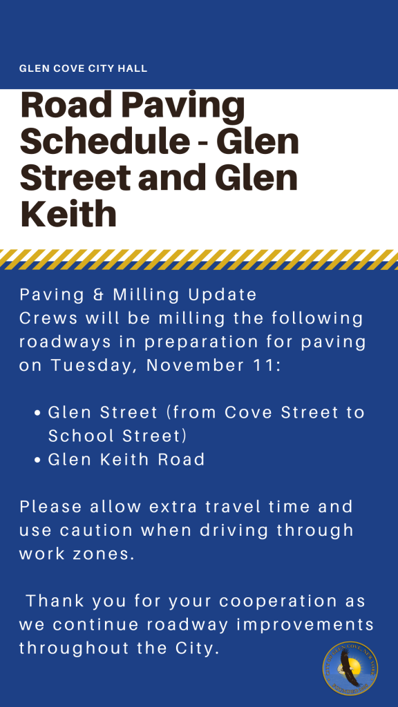Crews will be milling the following roadways in preparation for paving on Tuesday, November 11: