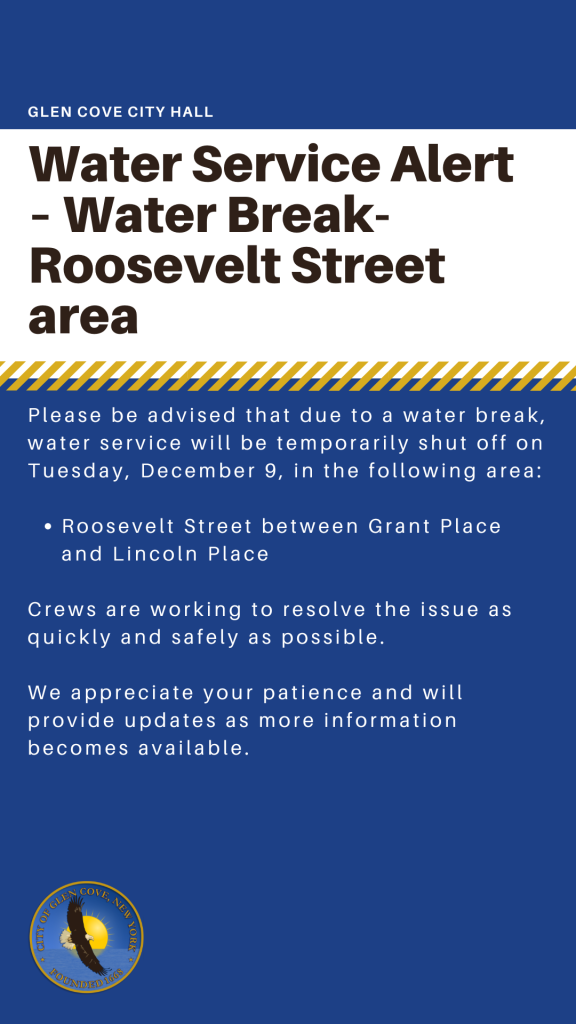 Please be advised that due to a water break, water service will be temporarily shut off on Tuesday, December 9, in the following area: