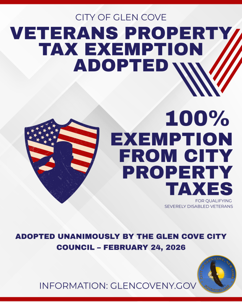 “This action reflects Glen Cove’s deep respect and gratitude for the men and women who have sacrificed for our country,” said Mayor Pamela Panzenbeck. “We are proud to stand behind our veterans and provide meaningful support to those who have given so much.”