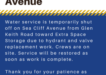 Water service is temporarily shut off on Sea Cliff Avenue from Glen Keith Road toward Extra Space Storage due to… Read More