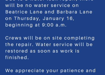 CITY ALERT – WATER SERVICE INTERRUPTION Due to a water leak repair, there will be no water service on Beatrice… Read More