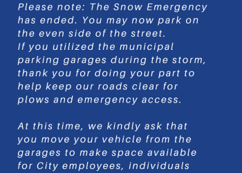 Snow Emergency Lifted – Resume Even-Side Parking & Clear Municipal Garages