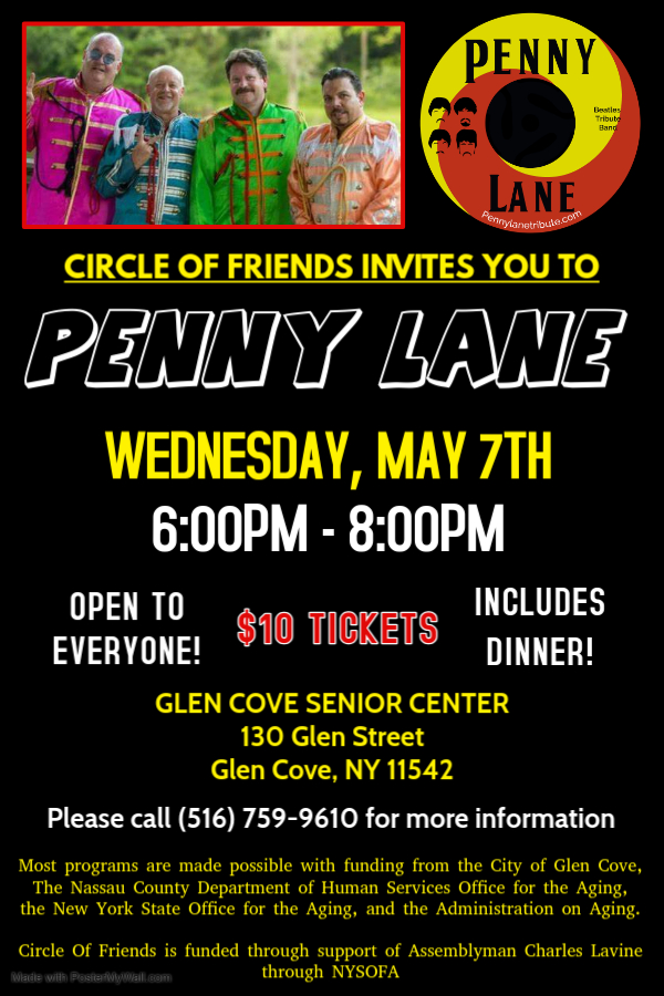 5/7—Circle of Friends Concert Series, Penny Lane. GC Senior Center. 6:00pm - 8:00pm