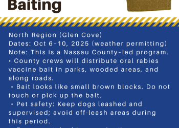 ALERT: Raccoon Rabies Vaccine BaitingNorth Region (Glen Cove)Dates: Oct 6–10, 2025 (weather permitting)Note: This is a Nassau County–led program. •… Read More
