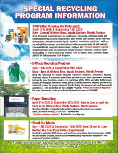 • Hazardous materials, which include products that are explosive or radioactive must be disposed by a private hauler. Disinfectants, pesticides, flammables (unused), propane tanks with contents, automobile fluids (not to include motor oil) may be disposed of properly at the City’s bi-annual S.T.O.P Program at 100 Morris Avenue. Please review the City Calendar for event date announcements.